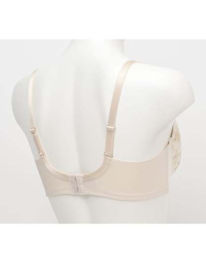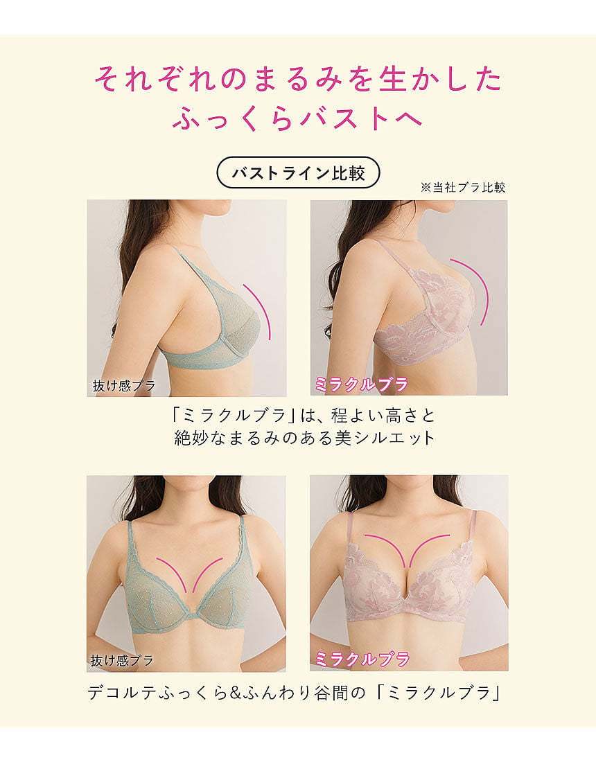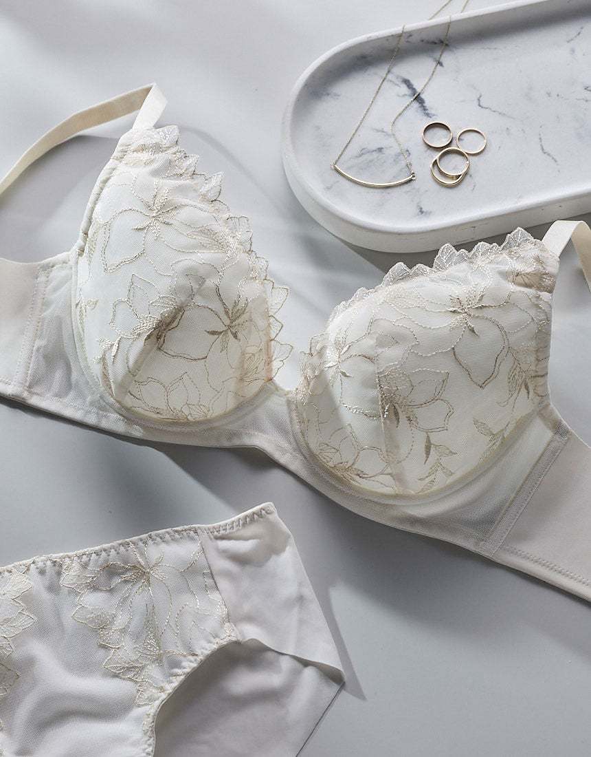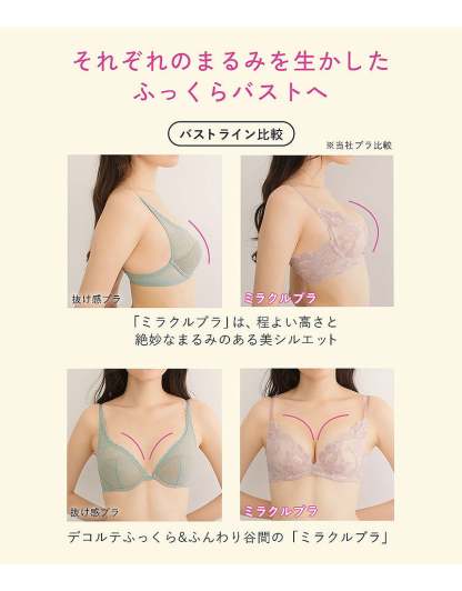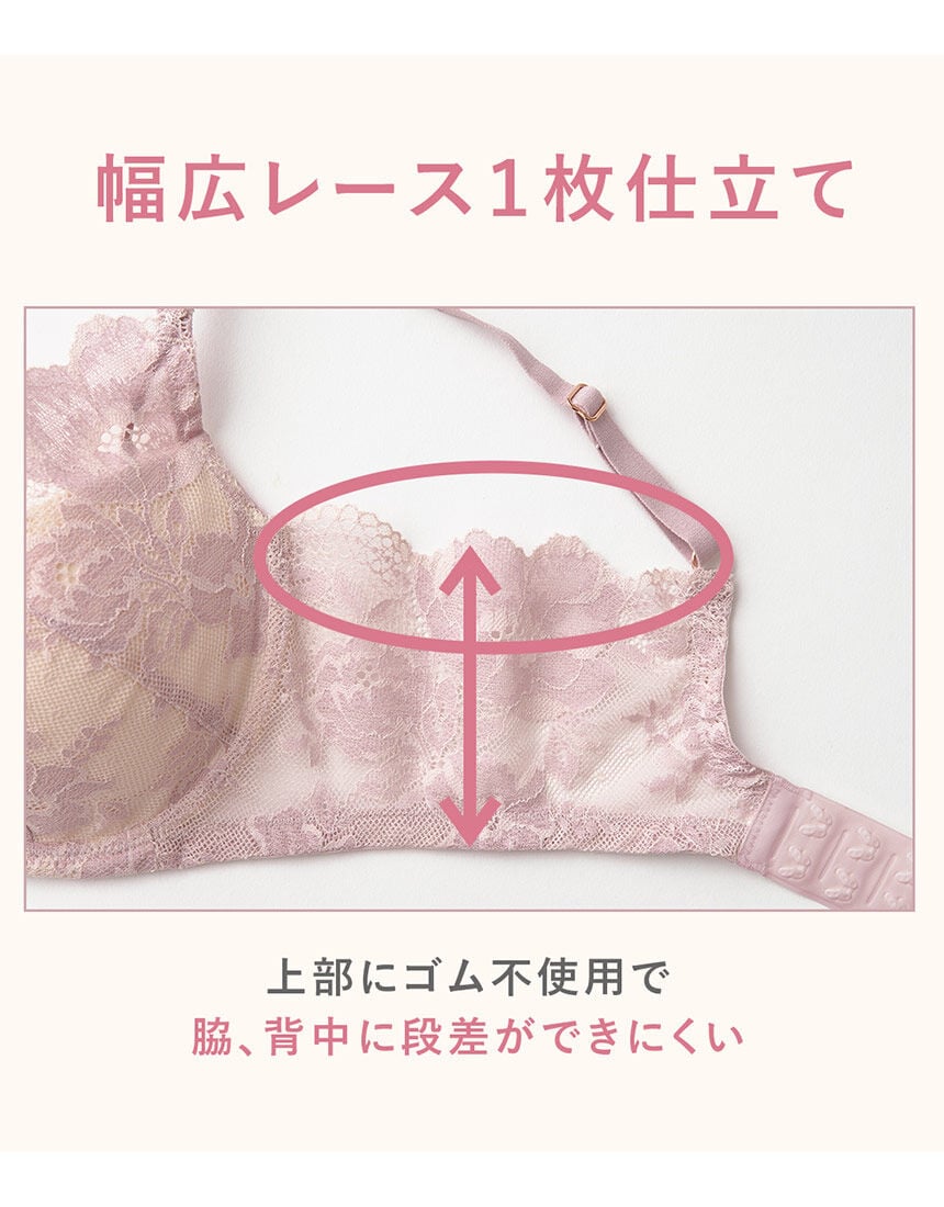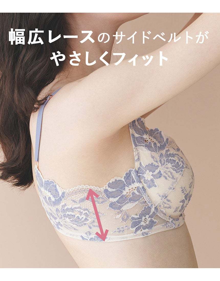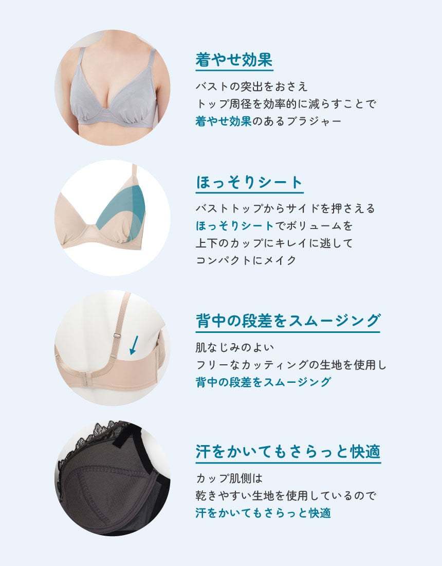 バストの突出をおさえ、トップ周径を効率的に減らすことで着やせ効果のあるブラジャー。