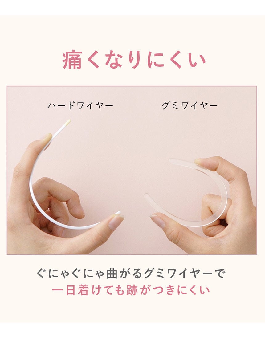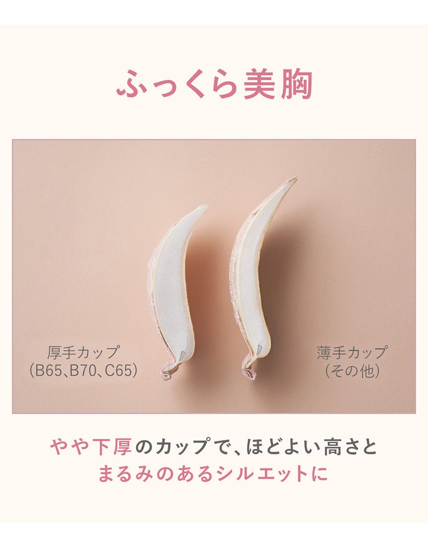 バストトップからサイドを押さえるほっそりシートでボリュームを上下のカップにキレイに逃がしてコンパクトにメイク。