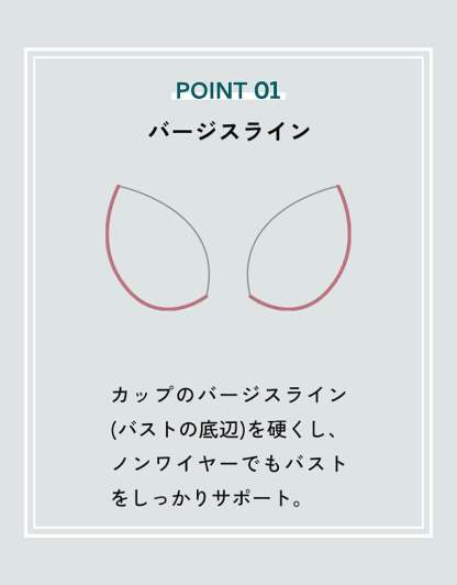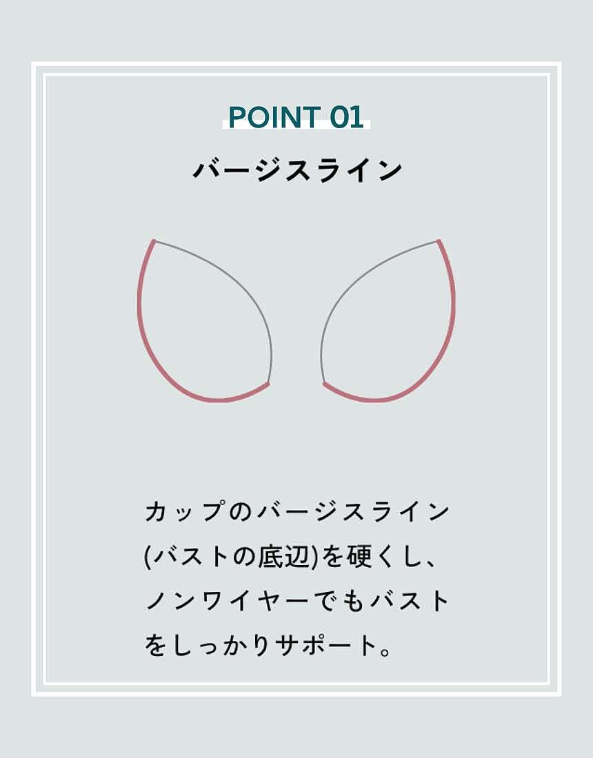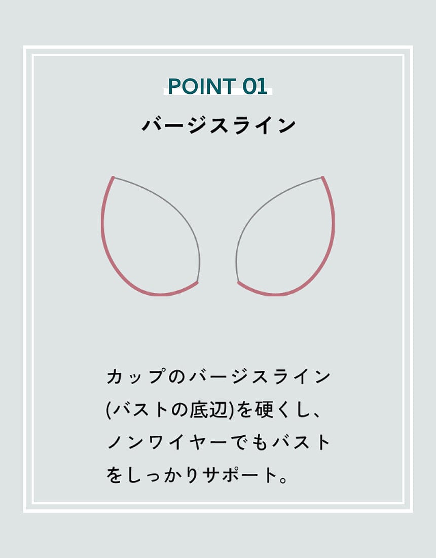 ・カップのバージスライン(バストの底辺)は硬く、ノンワイヤーでもバストを支える