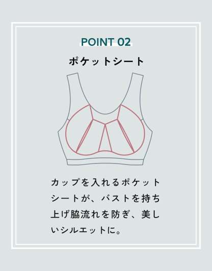 ・カップを入れるポケットシートがバストを持ち上げて脇流れを防ぎ、美しいシルエットに