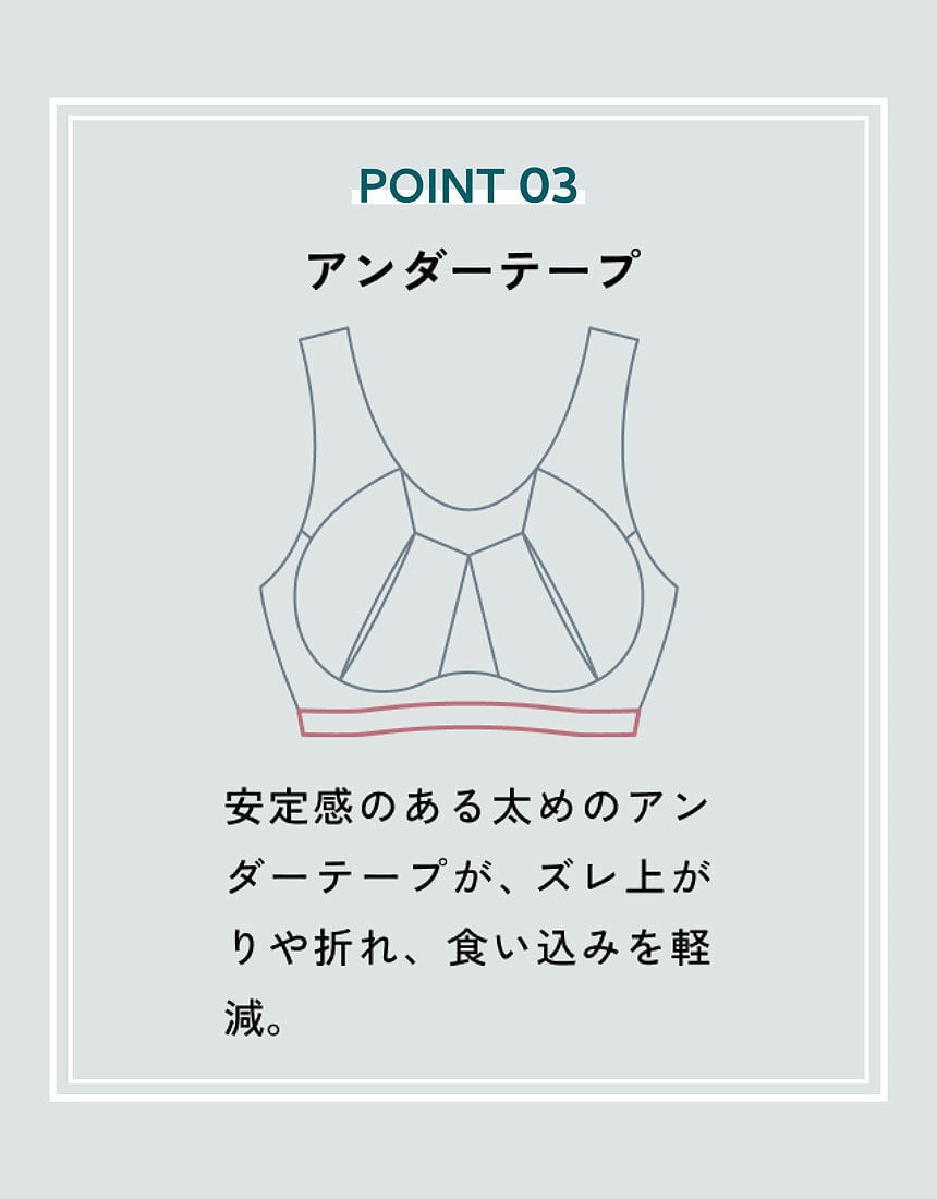(4L〜7L)…ハリコシのあるカップと脇サポートシートで、バストサイドすっきり。バックサポートシートで安定感をプラス