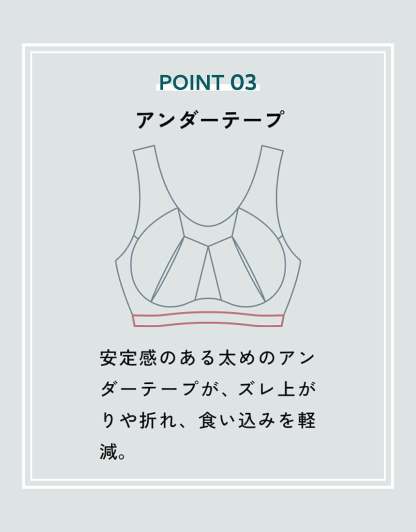 ・太めのアンダーテープは、安定感がありズレ上がりにくく、折れやくいこみを軽減