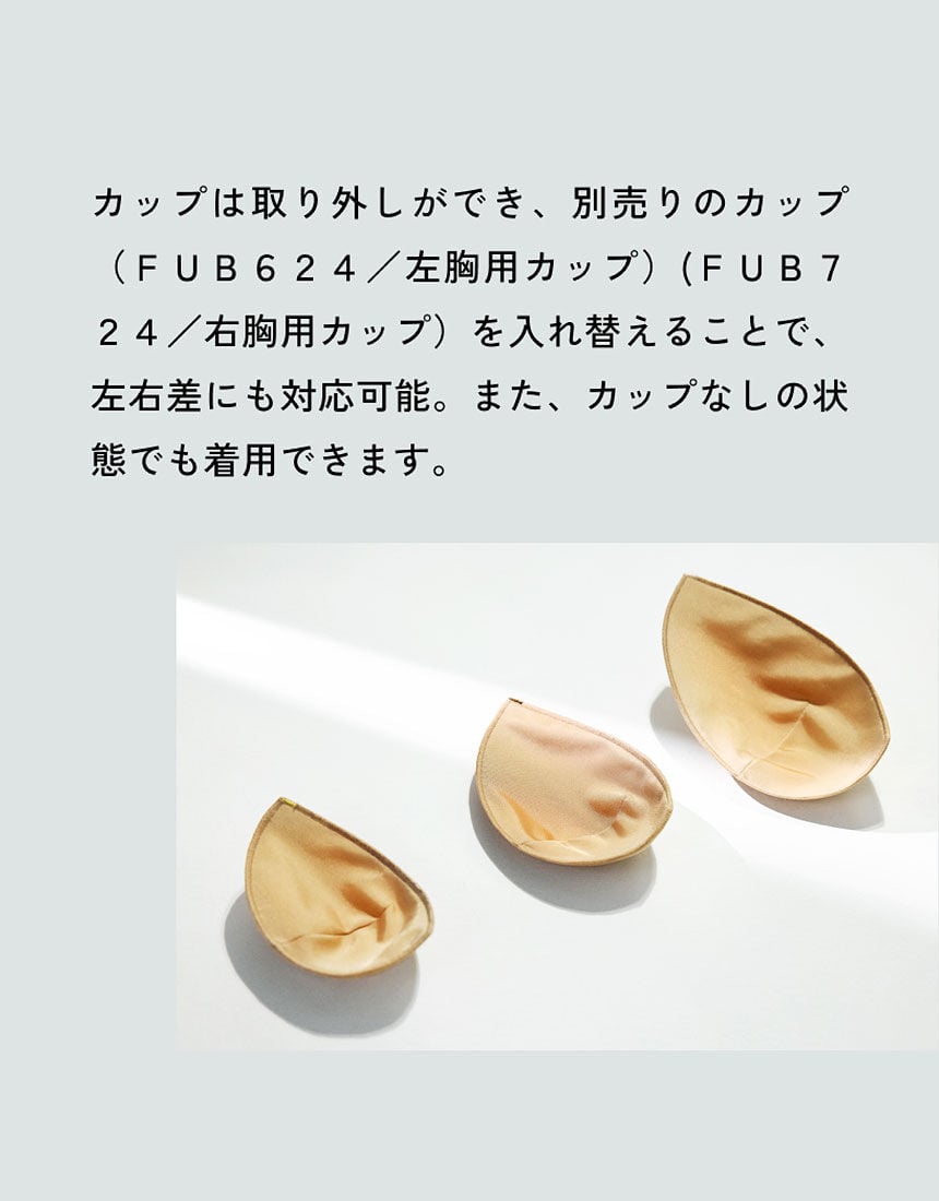 ・別売りのカップ(FUB624/左胸用カップ)、(FUB724/右胸用カップ)でバストの左右差にも対応でき、カップを外した状態でも着用可能