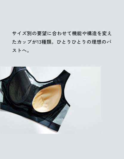 サイズ別の要望に合わせた設計とワコールサイズオーダーオリジナル立体不織布成形カップを採用