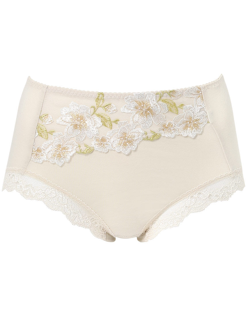 ブラ(PB5010)とのペアコーデが楽しめる華やかなショーツ。フロントには刺繍レースの花を上品に咲かせたラグジュアリーなデザイン。身生地には、よく伸びるオーガニックコットン混素材を使い、ほどよいフィット感に仕上げました。華やぎもリラックスも満たしてくれる、毎日のお気に入りに。