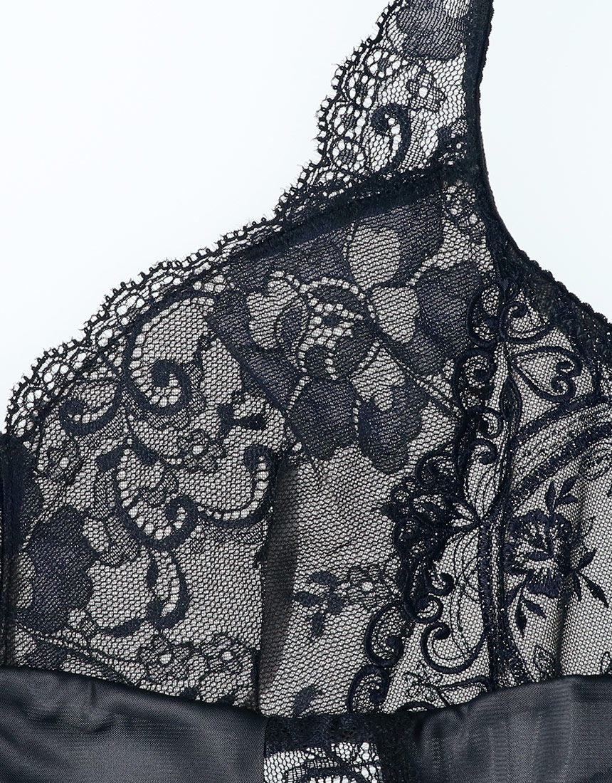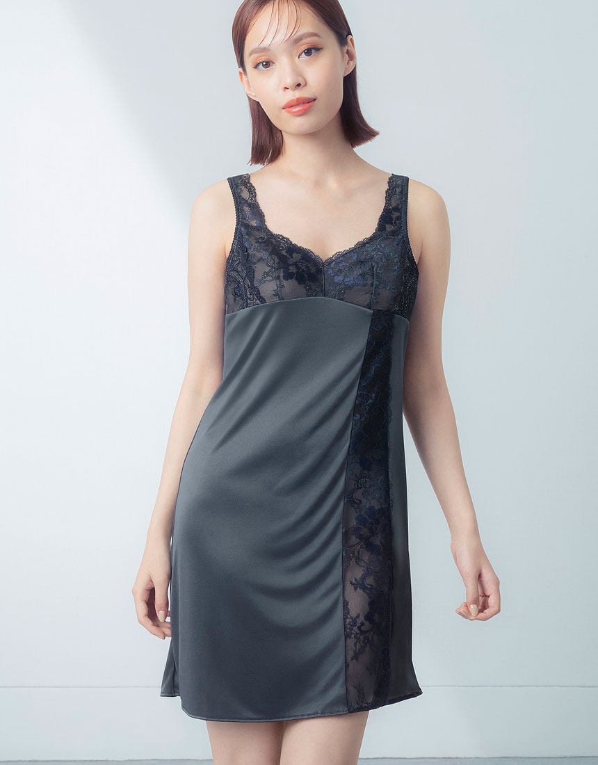 6000シリーズとコーディネートが楽しめる、華やかなスリップ。クラシカルな幾何学模様と花モチーフを、浮き立つような繊細なレースで表現した洗練されたデザイン。身生地部には吸汗速乾性のあるなめらかな素材を使い、さらっと軽やかな着ごこちに。気分を上げたい日のお出かけインナーはもちろん、優雅にくつろぎたい日のおうちインナーにもおすすめです。